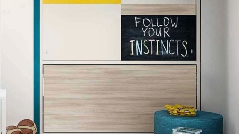 - Cama abatible de 90 x 190 con somier independiente de lamas de madera y colchón normal de hasta 20 cm de grueso.