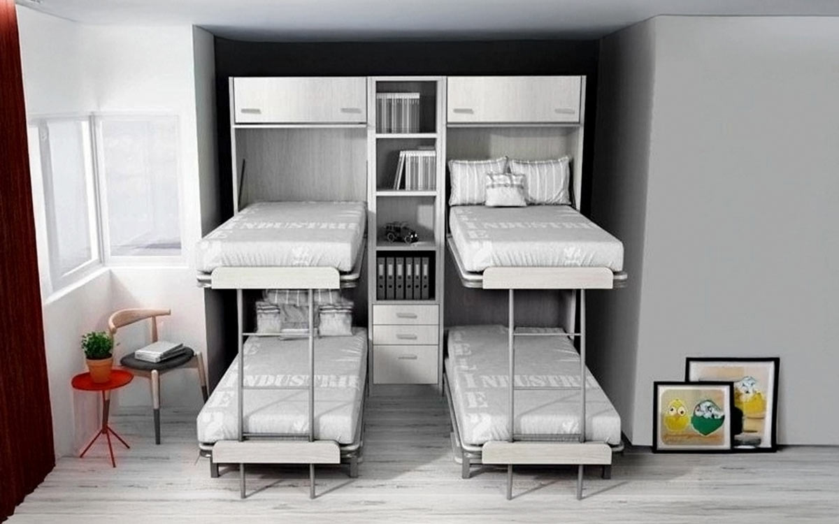 Habitación con dos literas : cuatro camas en muy poco espacio.