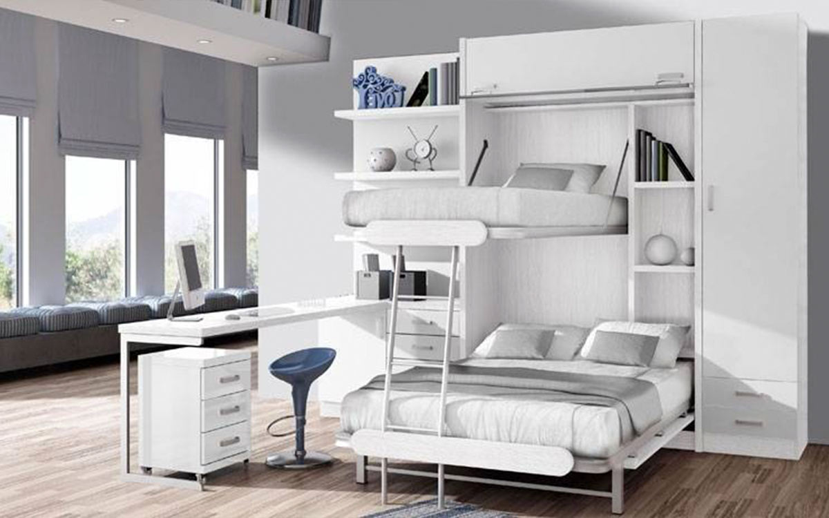 Cama abatible de 135 x 190, con litera de 90 cm arriba.