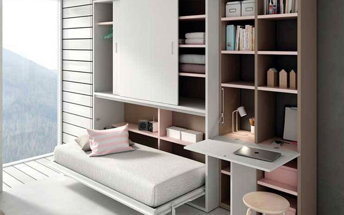 Mueble cama abatible horizontal con armario arriba