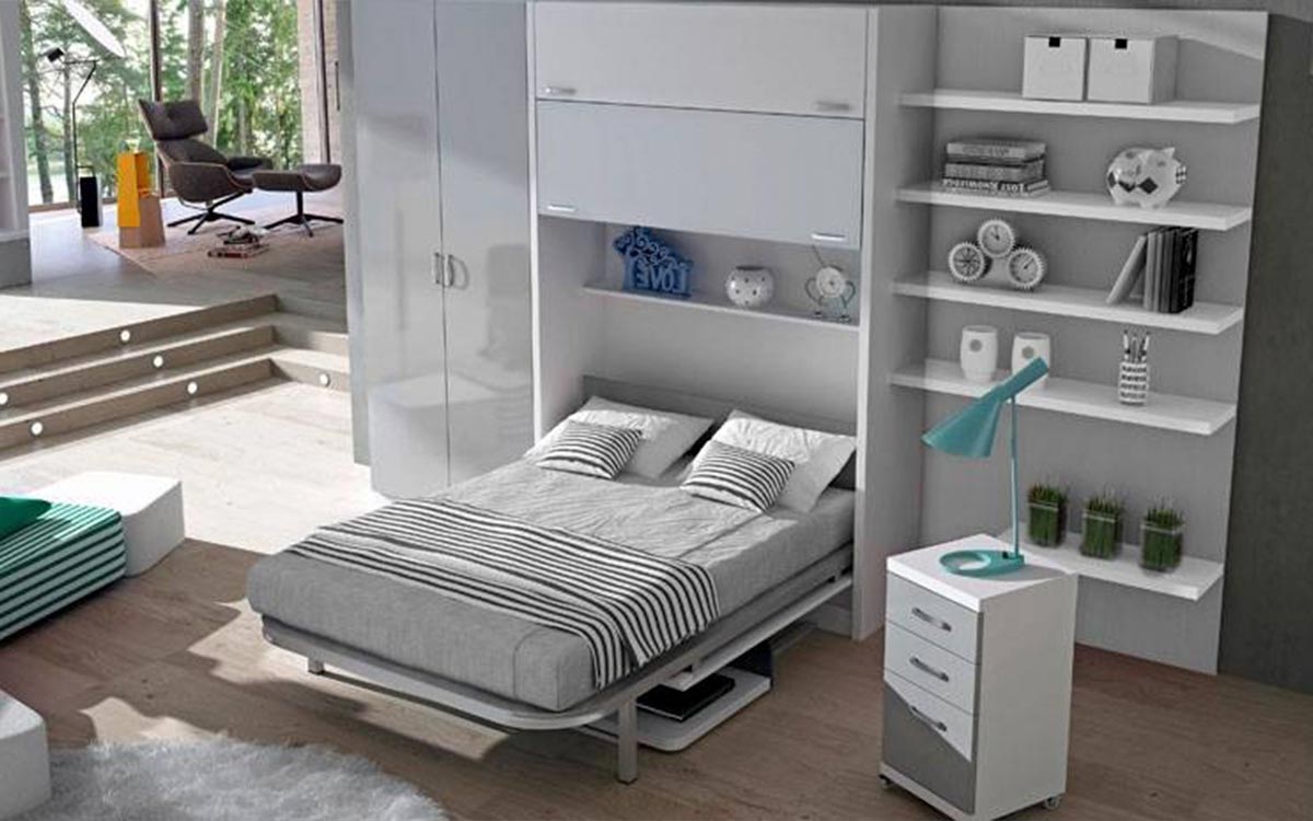 Cómodo escritorio que baja paralelo al suelo, sin tener que vaciarlo para bajar la cama.