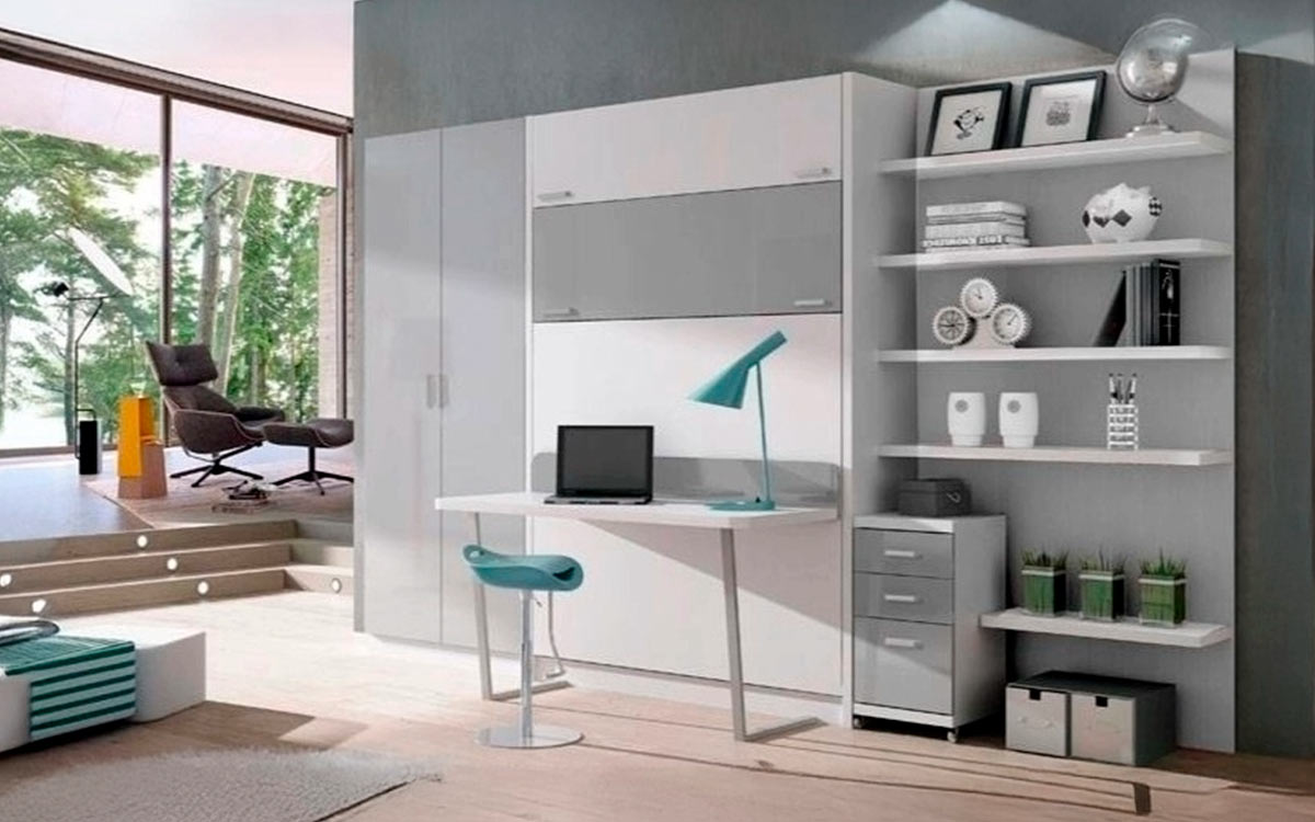 • Cómodo escritorio que baja paralelo al suelo, sin tener que vaciarlo para bajar la cama.