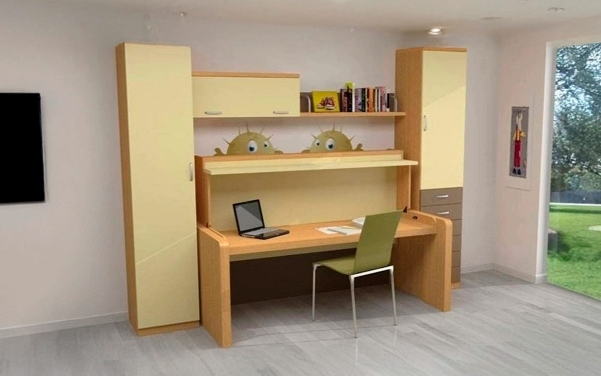 - Robusto sistema abatible que permite bascular la cama y elevar una enorme mesa de 60×190.