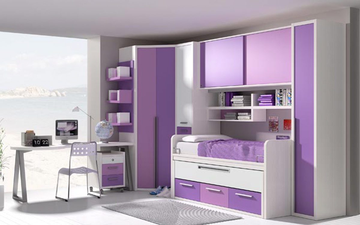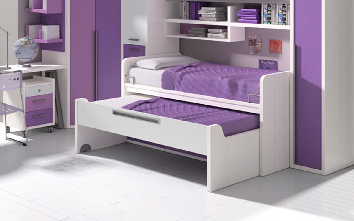 Este tipo de combinaciones son perfectas para habitaciones de planta alargada y estrecha. En una misma pared se puede acoplar la cama nido elevada con el somier extraíble y los cajones inferiores, así como los armarios y estanterías ideales para guardar todas aquellas cosas que los más pequeños de la casa necesitan. Los muebles pueden hacerse a medida y con un coste muy competitivo gracias a su modo de fabricación. Los materiales inocuos y de gran dureza, además, los hacen muy indicados para dormitorios infantiles. Se limpian con facilidad. Pídanos presupuesto en nuestras tiendas de Madrid.